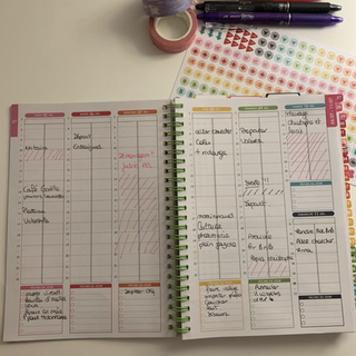 elle est trĂšs pratique: cette partie comporte une double page pour nos routines et je trouve ça gĂ©nial, fini la perte de temps tu les inscris tu check ce que tu dois faire et tu nâas plus aucune pression de ne pas oublier quelque chose, avoues ça te plaĂźt ? Vient ensuite les pages pour lâorganisation des repas avec une liste de courses prĂ©-rempli que tu peux Ă©toffer, elle est dĂ©tachable ( et oui plus dâexcuse pour les courses, ton organisateur te suis partout tu prends tu dĂ©taches et bim gain de temps ).